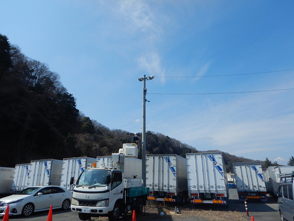 | 工事日程 | 1日 午後 高所作業車を使用し、 既存コンクリ-ト柱へ設置しました。 電源工事 配線作業がないので、設置作業も速い。 日が暮れたところで 防犯灯の向きを調整し完了。 私のイメ-ジより、明るく感じました。 |