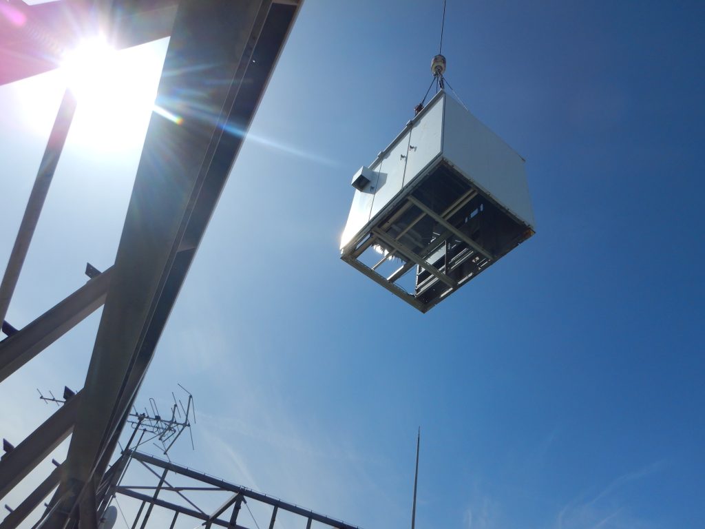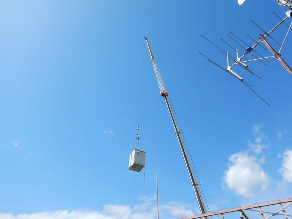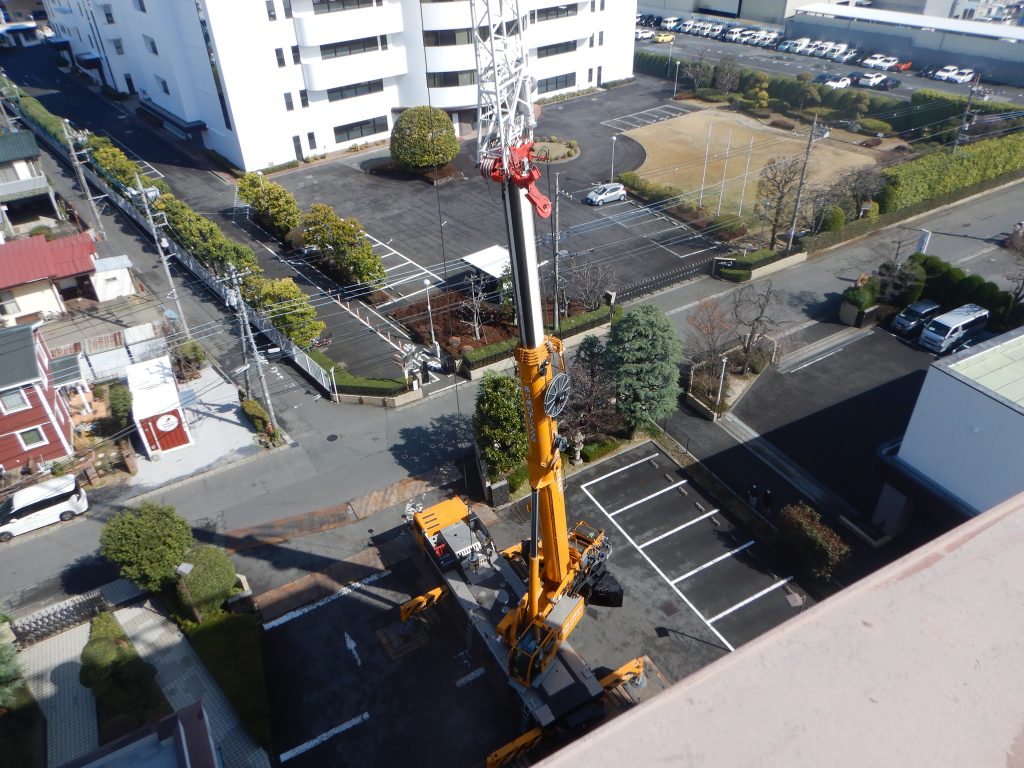| 工事概要 | 8階建て工場の屋上に設置してある4面体のキュ-ビクルの交換工事 |