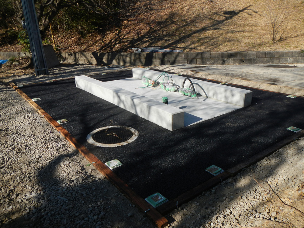 | 工事概要 | 未使用の残置QP2面体を撤去し そこへ新規5面体のQPを設置します。 既存使用中のQP5面体は撤去しそこを駐車場とします。又、低圧幹線がコンクリ-ト柱にて架空配線で敷設されていたものを全て地中埋設とし見栄えを良くしました。 |
