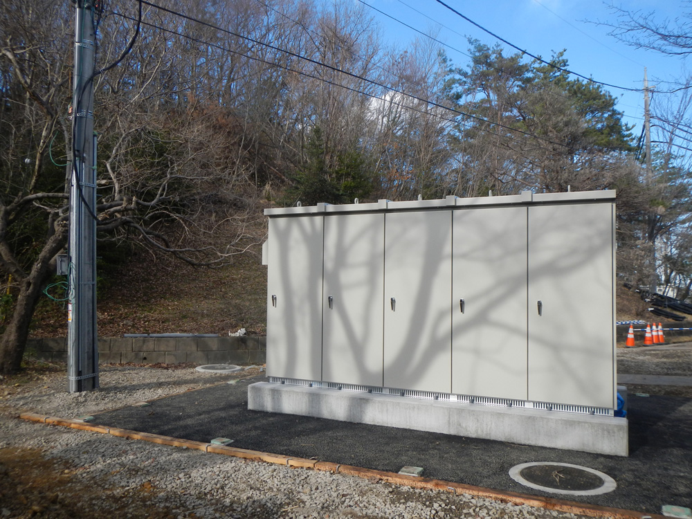 | 使用材料 | PAS キュ-ビクル 電灯100KVA×2 動力300KVA×1 5面体 高圧ケ-ブル 低圧ケ-ブル各種 ハンドホ-ル各種 エフレックス各種 その他 |